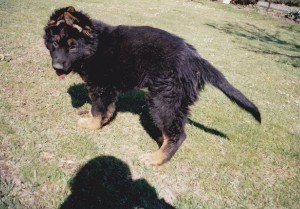 Když jsem se konečně rozhodla pořídit si štěně vlastní, váhala jsem mezi NO a RTW. Ovčák nakonec opět zvítězil, a protože kamarád měl zrovna štěňata, zajela jsem se na ně podívat. Při druhé návštěvě se ke mně přihnalo štěně a zakouslo se mi do stehna. Nemohla jsem se ho vůbec zbavit. Tak si mě Ozzy vybral sám. Takže volba byla jasná. Ozzy (když mě naštve říkám mu Osbourne) se do mě zakusuje pořád a má do všeho (nejvíce do obran) až moc velkou chuť tak uvidíme ,,,,,,, (snad mě nesežere :-)
