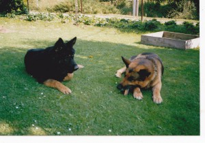Můj další pes, byl "danajský dar" od mých kamarádů ze cvičáku. Pořád mě přemlouvali, abych si pořídila "ovčáka" - to je něco jiného než boxer, říkali. Tenkrát byl cvičák rozdělen na "ovčáčkáře" a "boxerkáře", kteří se neustále dohadovali, které plemeno je lepší. Když jsem si nedala říct, rozhodli se, že vezmou věci do vlastních rukou a štěně mi koupili. Bohužel jsem bydlela v malém bytě v paneláku a štěně se tam jaksi nevešlo. Nakonec si ho musel jeden z kamarádů vzít k sobě na zahradu. Jenže bydlel až za Prahou a já neměla auto. Jezdila jsem za Blackem vlakem, autobusem a půl hodiny pěšky čtyřikrát týdně... Až na jaře, když se oteplilo, jsem se odstěhovala na chatu, kde mohl Black být konečně se mnou. Ale to mu již bylo půl roku a ten ztracený čas, kdy jsem s ním moc nebyla, byl znát. Já, zvyklá na přítulné fenky - boxerky, jsem nemohla k tomu psímu puberťákovi, který mě neustále někam táhnul, najít cestu. On zatím pěkně rostl, až dosáhl mé výšky (když se postavil na zadní, koukali jsme si z očí do očí), a skoro i mé váhy. Bojovali jsme spolu tři roky, než jsem se odvážila na zkoušku, a na závody, ale ale na prvních závodech podle ZVV 1 všechny, včetně mě, překvapil. Skončili jsme na prvním místě a moji velikou radost z tohoto prvního úspěchu nic nepřekonalo. A pak jsme konečně k sobě našli cestu. Black byl úžasný pes a měl úžasnou chuť do cvičení. Když jsme se nakonec dostali na mistrovství republiky podle 500b, měl vždy poslušnost ze všech nejlepší. Bohužel obrana ho bavila až moc, a mě se ho na obraně nepodařilo nikdy úplně zvládnout, a tak jsme měli vždy potíže s technickou částí obran, kde kromě kousání musel i poslouchat. Čím byl starší, tím lépe věděl, co si může dovolit, když na něj nemůžu. A ač byl náruživý stopař a vyhrál spoustu závodů díky stopám, na mistráku, kde byly stopy dvě, se nám bohužel moc nedařilo. Někdy se mu prostě nechtělo... Naše nejlepší umístění na MR bylo 3.místo na výběrových závodech.
