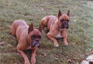 V 18ti letech jsem zatoužila po psovi vlastním a samozřejmě opět po boxerce. Abra byla miláček jen můj a když v 6ti měsících onemocněla parvovirózou, dnem i nocí jsem do ní injekční stříkačkou cpala čaj s medem, aby nebyla dehydrovaná. Oproti chmurným předpokladům našeho veterináře se uzdravil a od té doby se ode mne nehnula ani na krok. Svoji vděčnost bohužel nijak neprojevovala při výcviku. S notnou dávkou trpělivosti a sebezapření jsem s ní složila zkoušky ZM, ZVV 1 a 2, IPO 1 a 2. Když jsem pak chtěla pokračovat dál zkouškou ZVV 3, kde polohy sedni lehni vstaň pes vykonává pouze na posunky, odmítala se na mě dívat a odvracela hlavu (dávala mi tak jasně najevo, že ji to absolutně nebaví). Náležitě jsem jí proto vysvětlila, že odvracet hlavu nebude, odešla jsem na příslušnou vzdálenost a otočila se k ní čelem. Měla tak sveřepě zavřené oči, že jsem veškeré další úsilí vzdala.